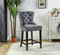 Grey Velvet Plush Cushioned Barstool with Chrome Nailhead and Ring