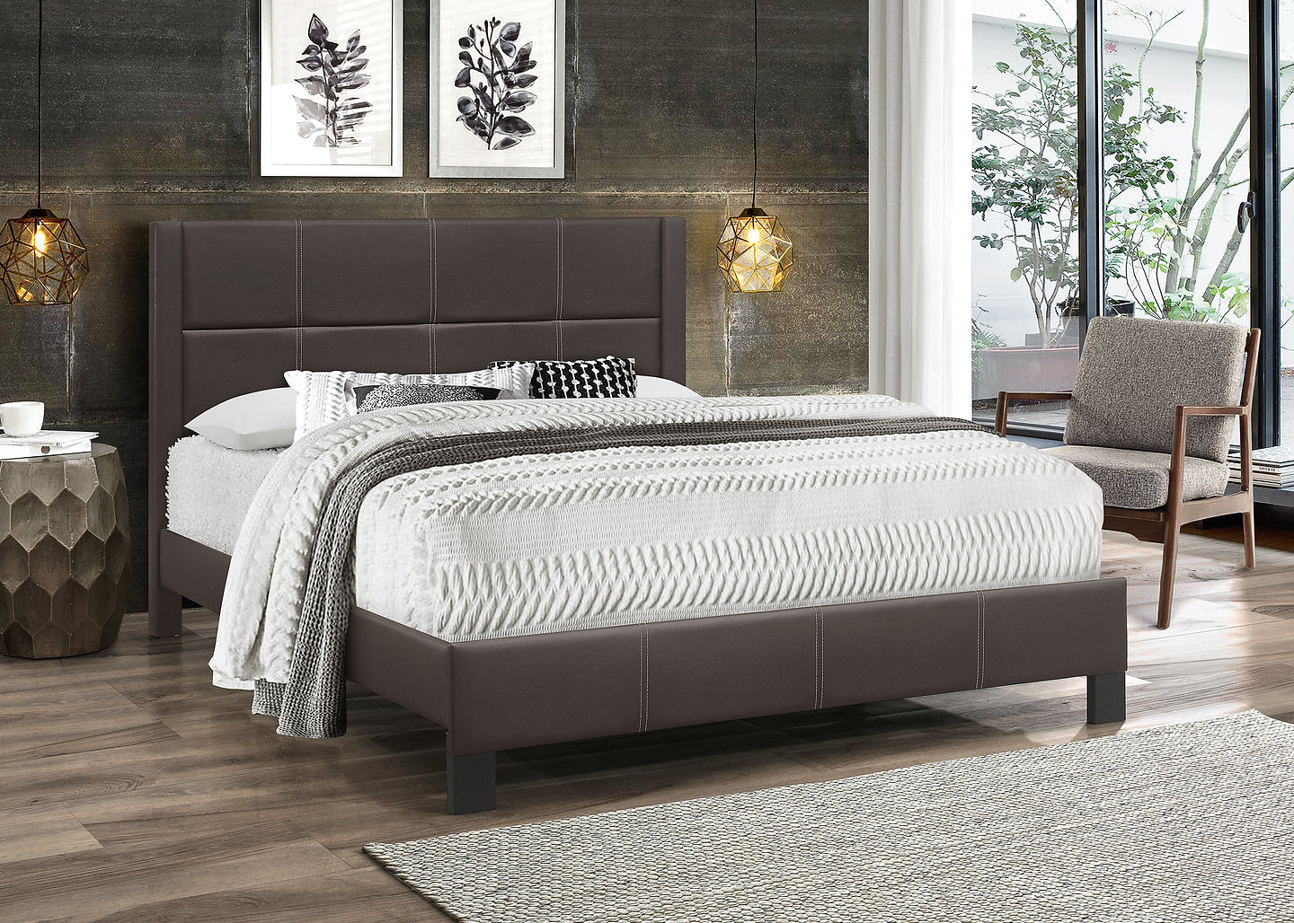 Introduce a touch of warm, modern elegance with the Bed Brown-IF 5352. This platform bed features a deep espresso PU upholstery, beautifully defined by precise contrast stitching. Its rich, earthy tone and clean-lined silhouette offer a versatile and sturdy foundation, blending organic warmth with contemporary design for a grounded and stylish bedroom retreat.