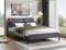 Introducing the Bed Grey-IF 5587, where cozy texture meets clean, minimalist design. This modern platform bed features a channel-tufted headboard upholstered in soft grey corduroy, offering a uniquely inviting and tactile feel. Elevated on sleek black steel legs, its low-profile silhouette provides a grounded, contemporary look while the integrated support system ensures effortless comfort and style.