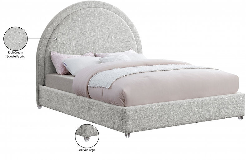 Introduce a touch of modern luxury and curated texture to your bedroom with the Bed-IF 5205. This contemporary design combines the cozy, inviting feel of rich cream bouclé fabric with the clean, airy illusion of transparent acrylic legs. Featuring a softly padded headboard and integrated support, it creates a serene and stylish focal point that feels both effortlessly chic and comfortably grounded.